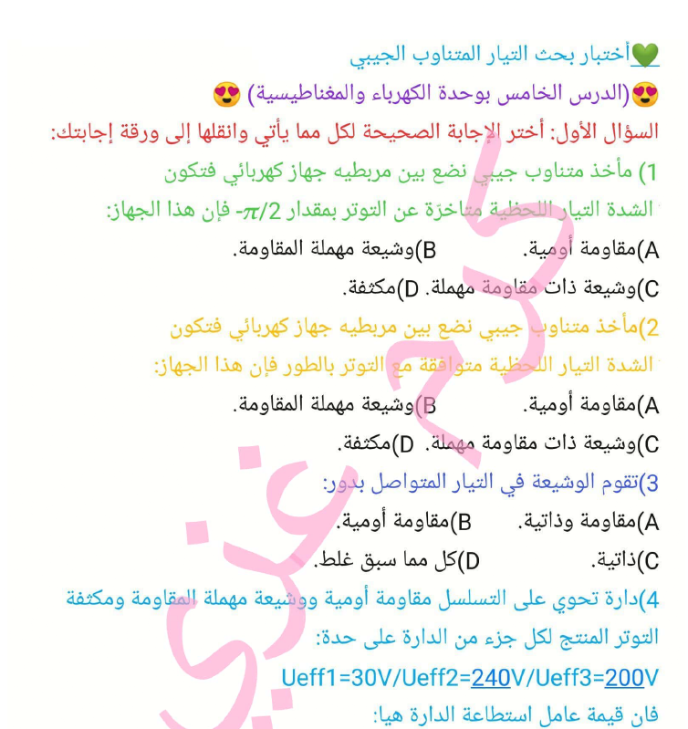 نموذج امتحاني التيار المتناوب الجيببي - البكالوريا العلمي
