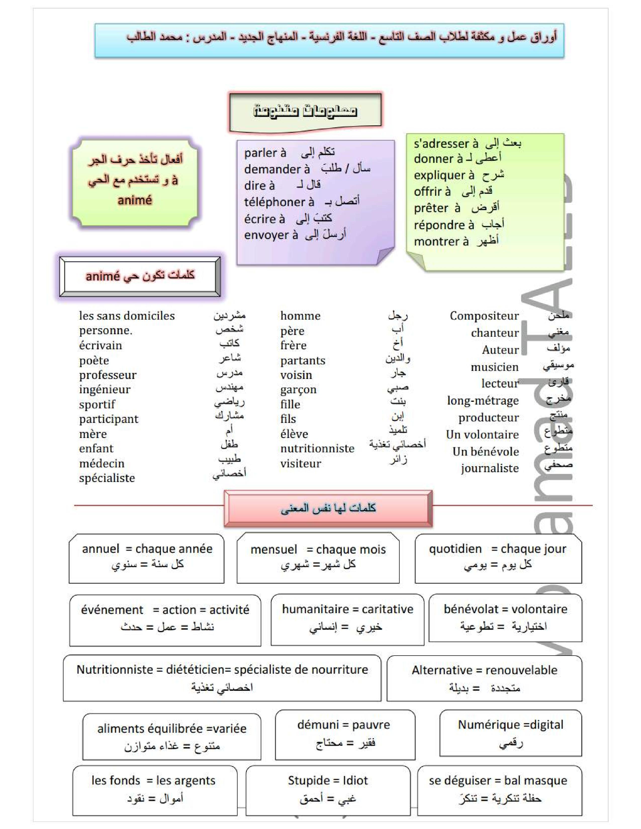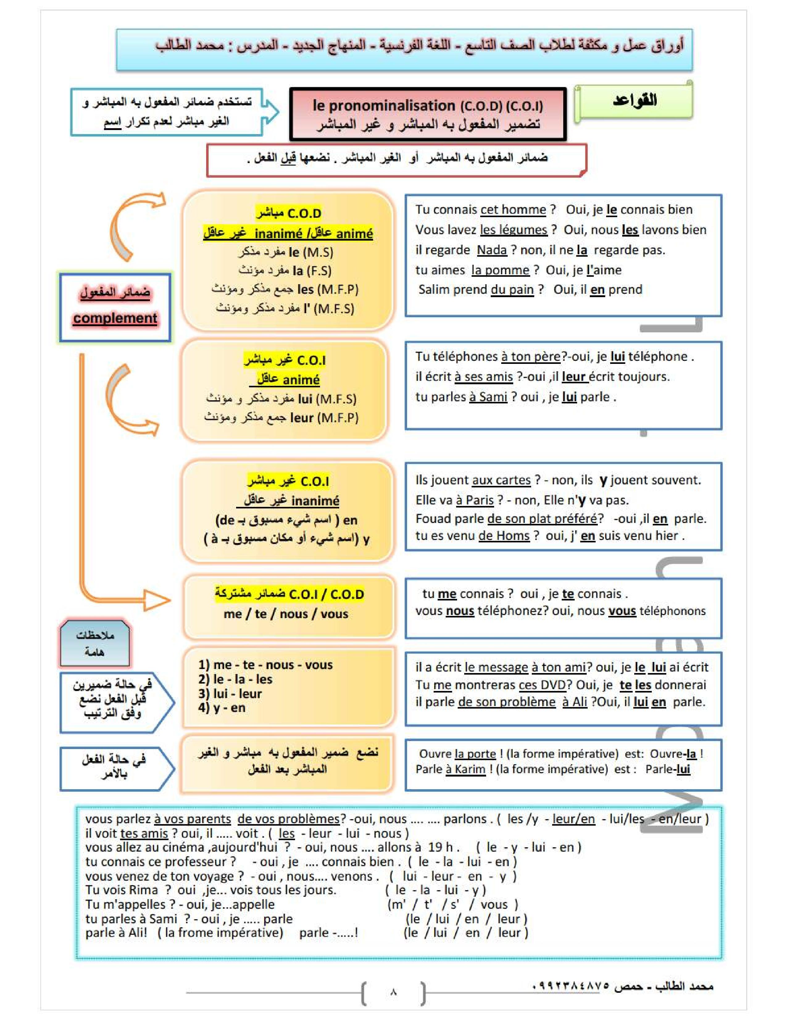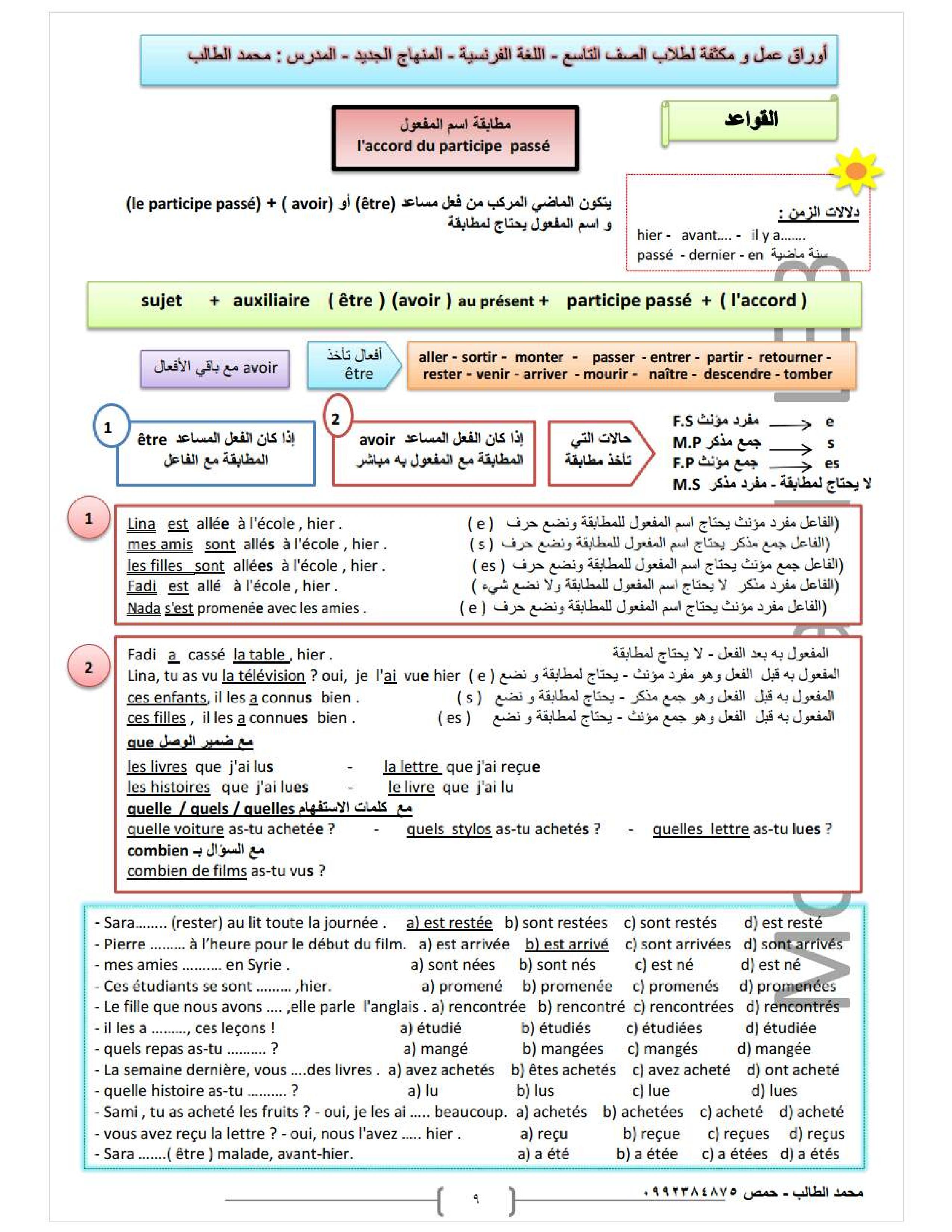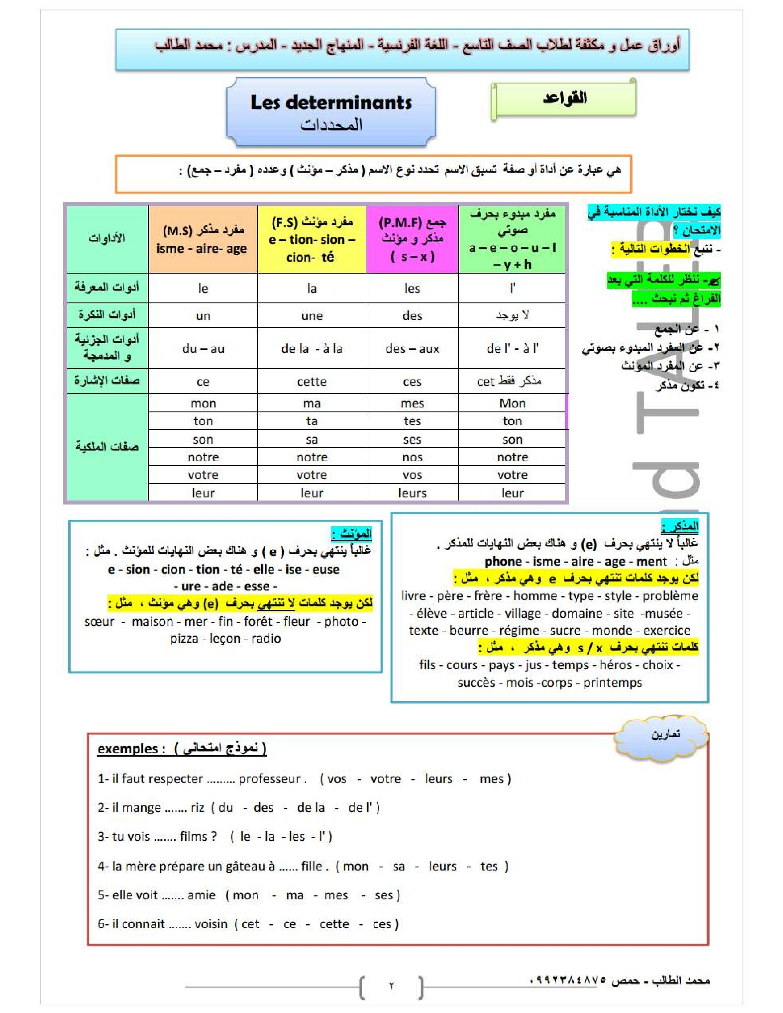 مكثفة شاملة لكافة التعديلات في المنهاج الجديد اللغة الفرنسية الصف التاسع