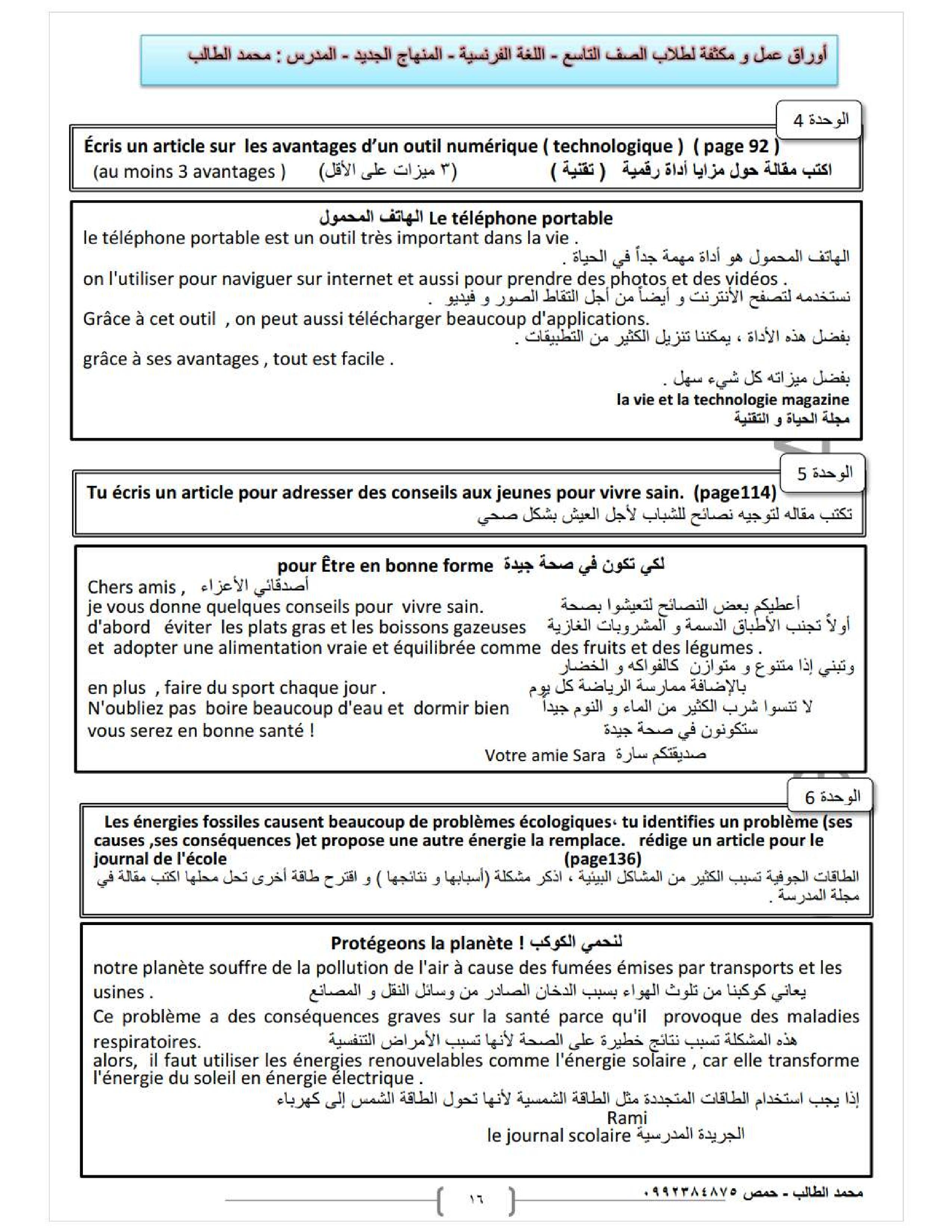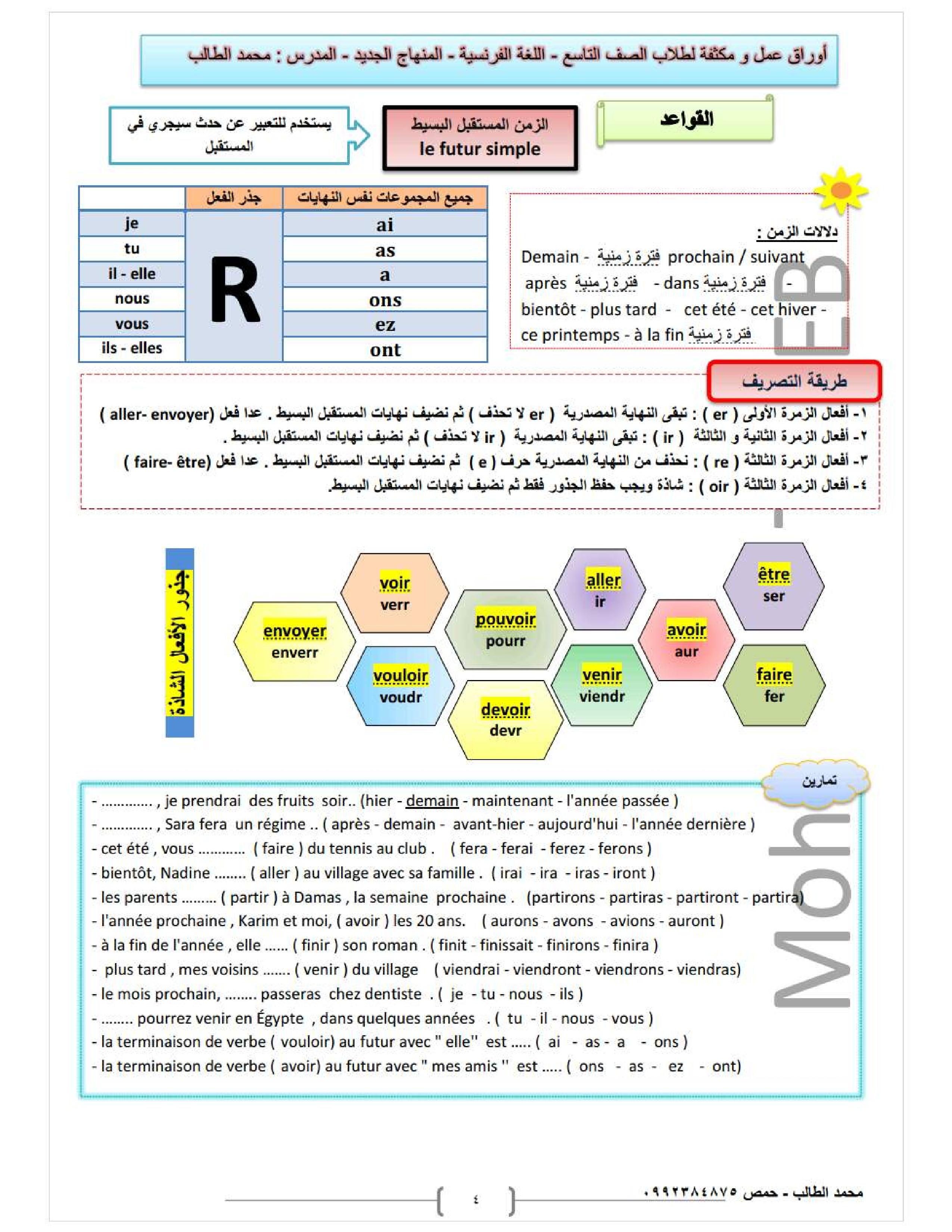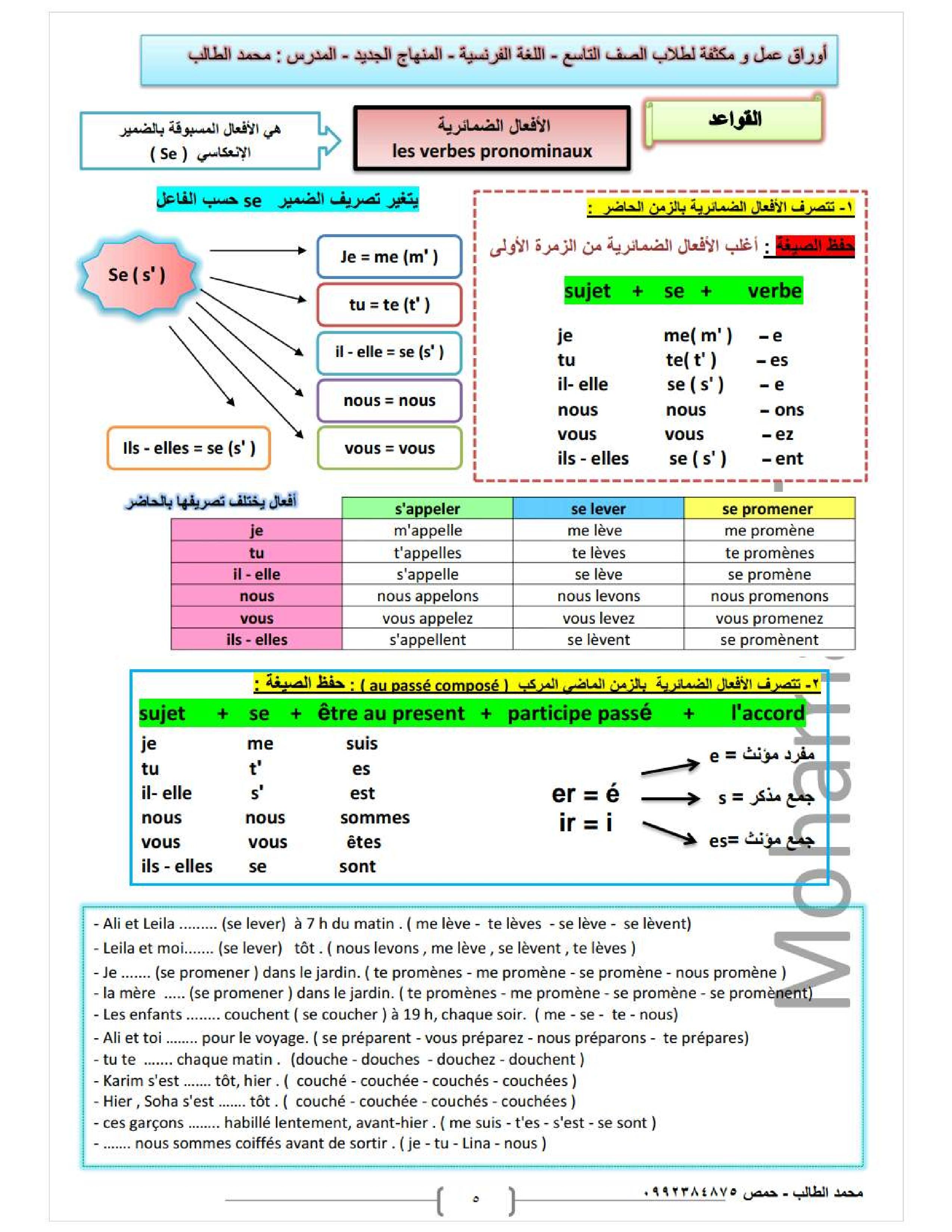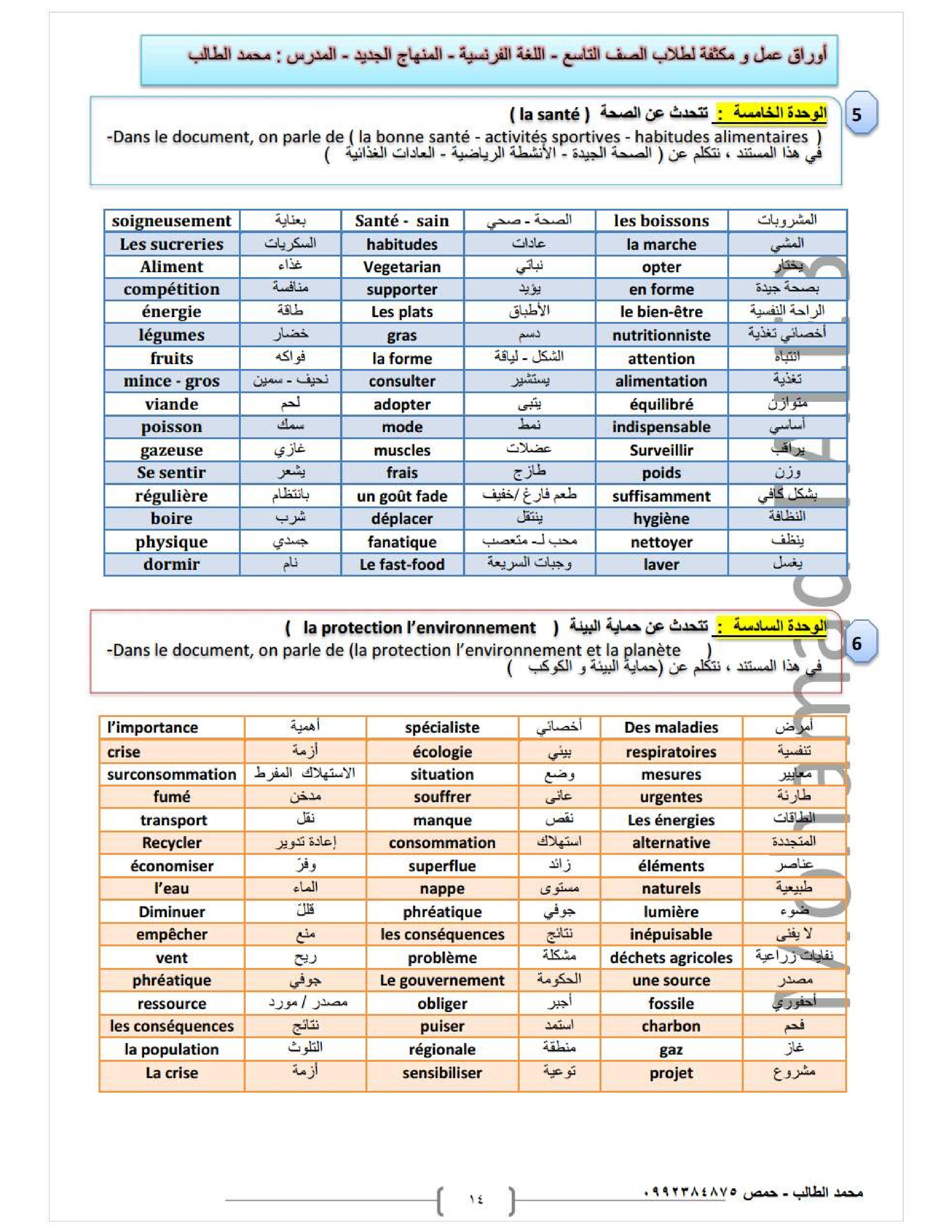مكثفة شاملة لكافة التعديلات في المنهاج الجديد اللغة الفرنسية الصف التاسع